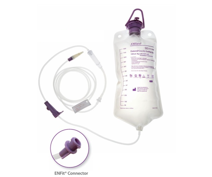 AMSure® DEHP-free Enteral Gravity Feeding Sets with ENFit® Transition Connectors, 1200mL CS/30